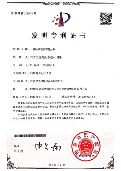 一種臥式連續石(shi)膏炒鍋發明專利