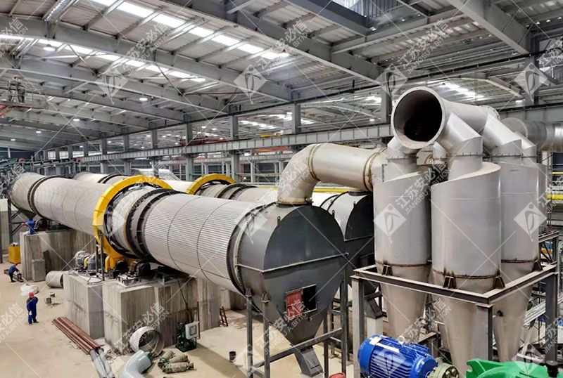 (3)選用長徑比大的單(dan)筒回轉(zhuan)烘干機,物料停留時間長,熱交換(huan)充分;